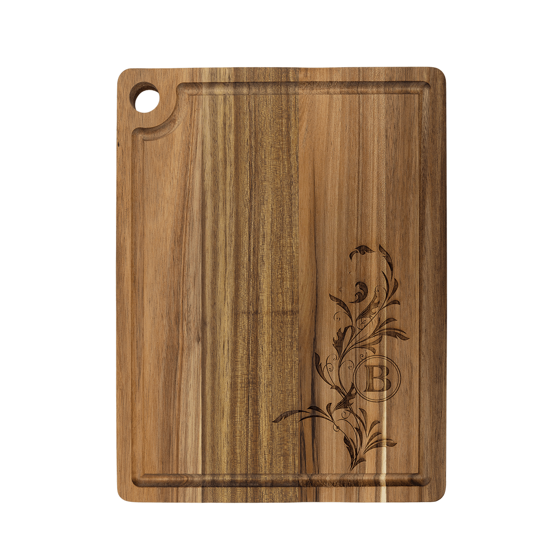 TITLE: Acacia Cutting Board with Drip Ring and Corner Hole, Personalized Engraving Gifts shipped from USA.