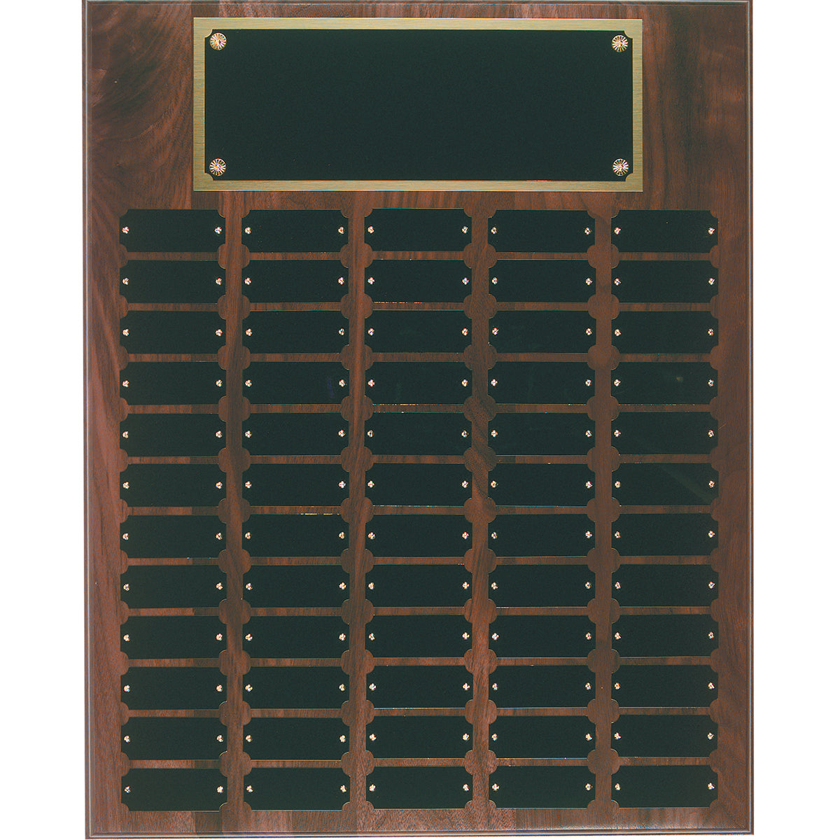 Step Edge Genuine Walnut Completed Perpetual Plaques come with laserable black brass plates. Completed perpetual plaques are assembled with screws and packed in a foam pouch. They come in multiple sizes.