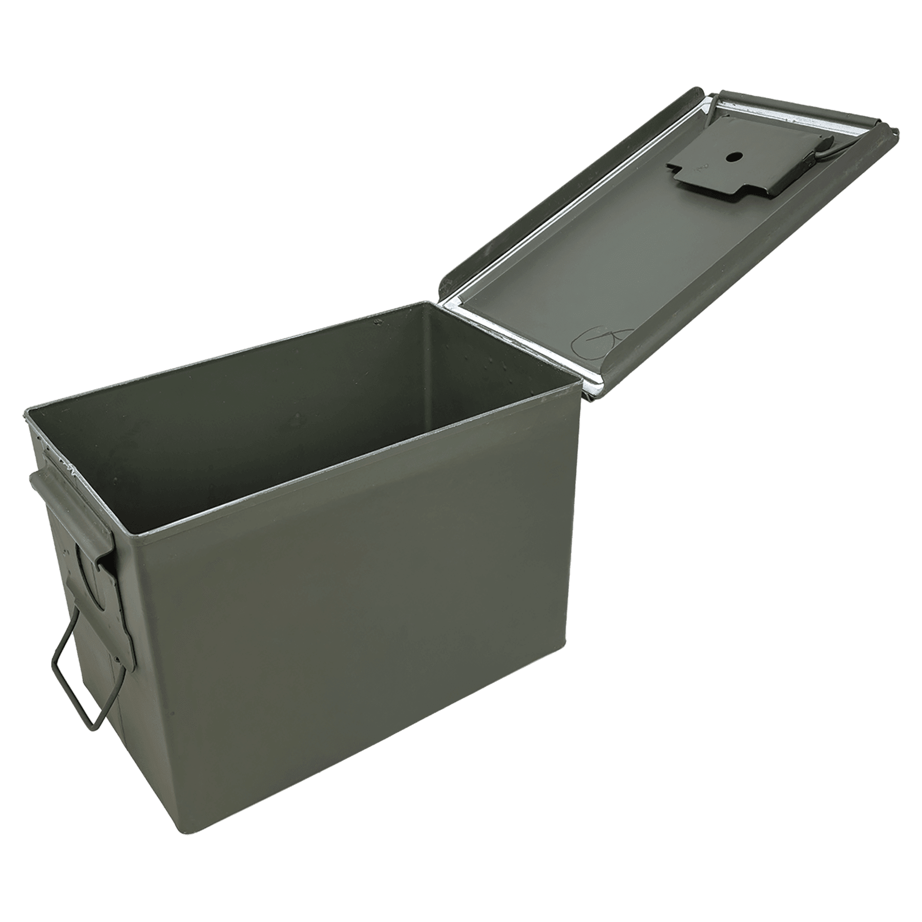 The Fat 50 Caliber Can is similar to the 50 Cal, but a little taller and wider. This 50 Caliber Can was used by the US Military to store and carry. Now declared surplus property, our customers can use it. The lid features a water-tight rubber seal and clamp-down and carry handle. A perfect storage solution for anything needing to stay dry and protected from the elements. Guaranteed to be the cleanest surplus cans available, they personalize beautifully. A great gift for hunters!