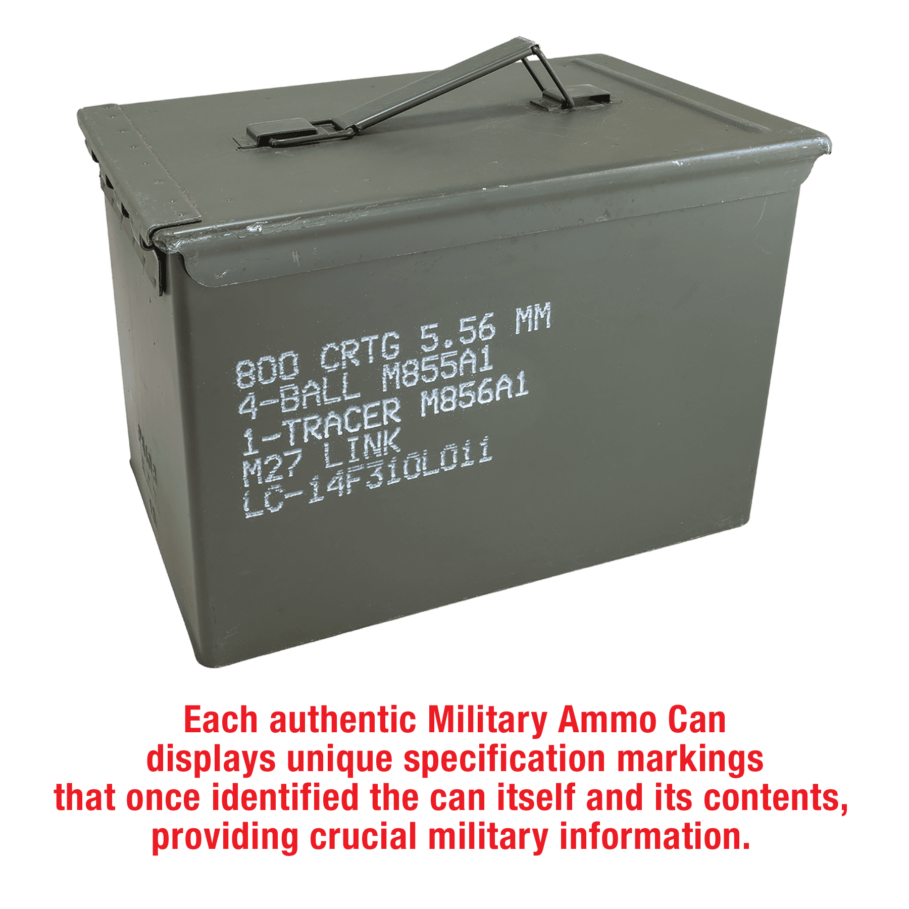 Fat 50 Caliber Army Surplus Steel Can, Personalized Engraving Gifts shipped from USA.