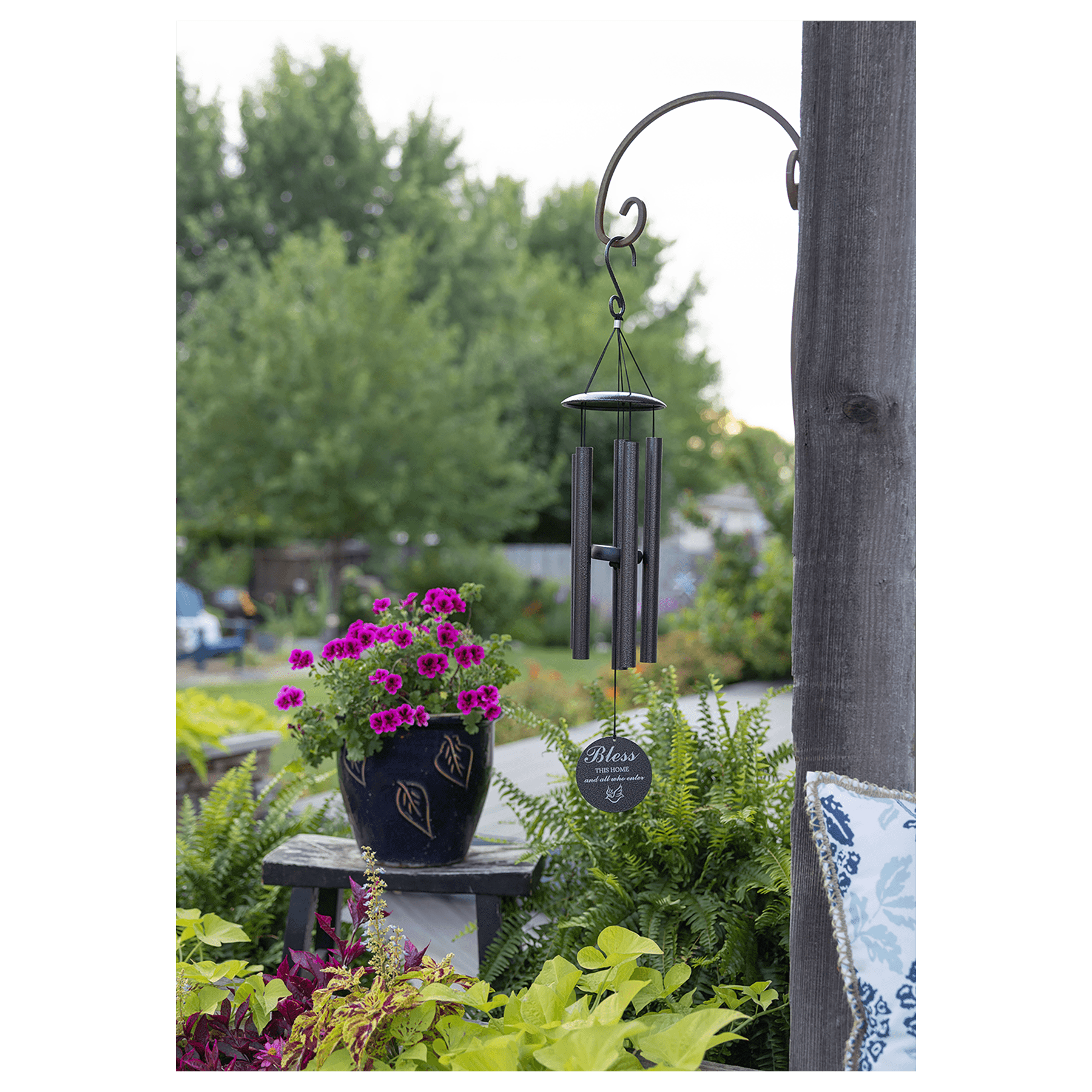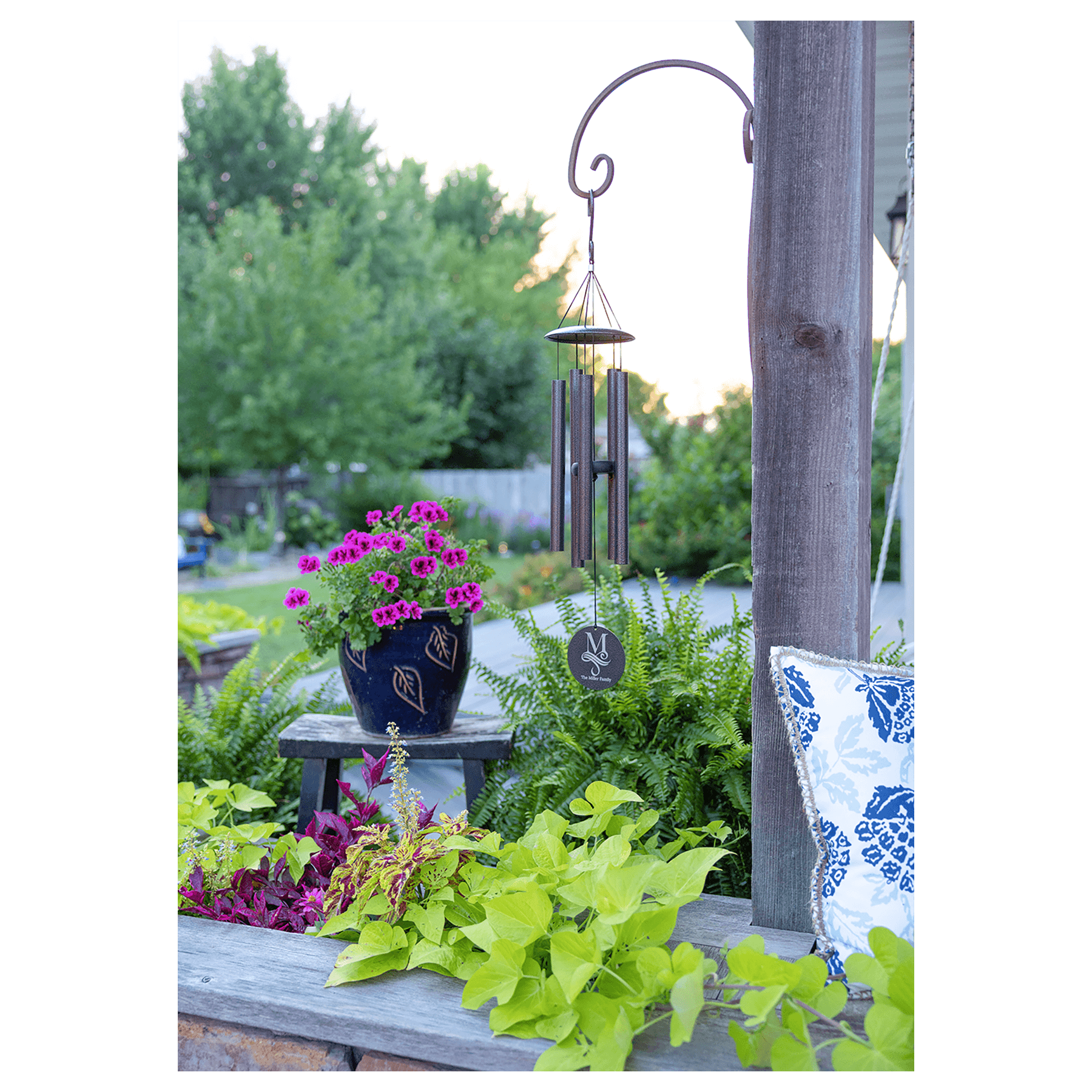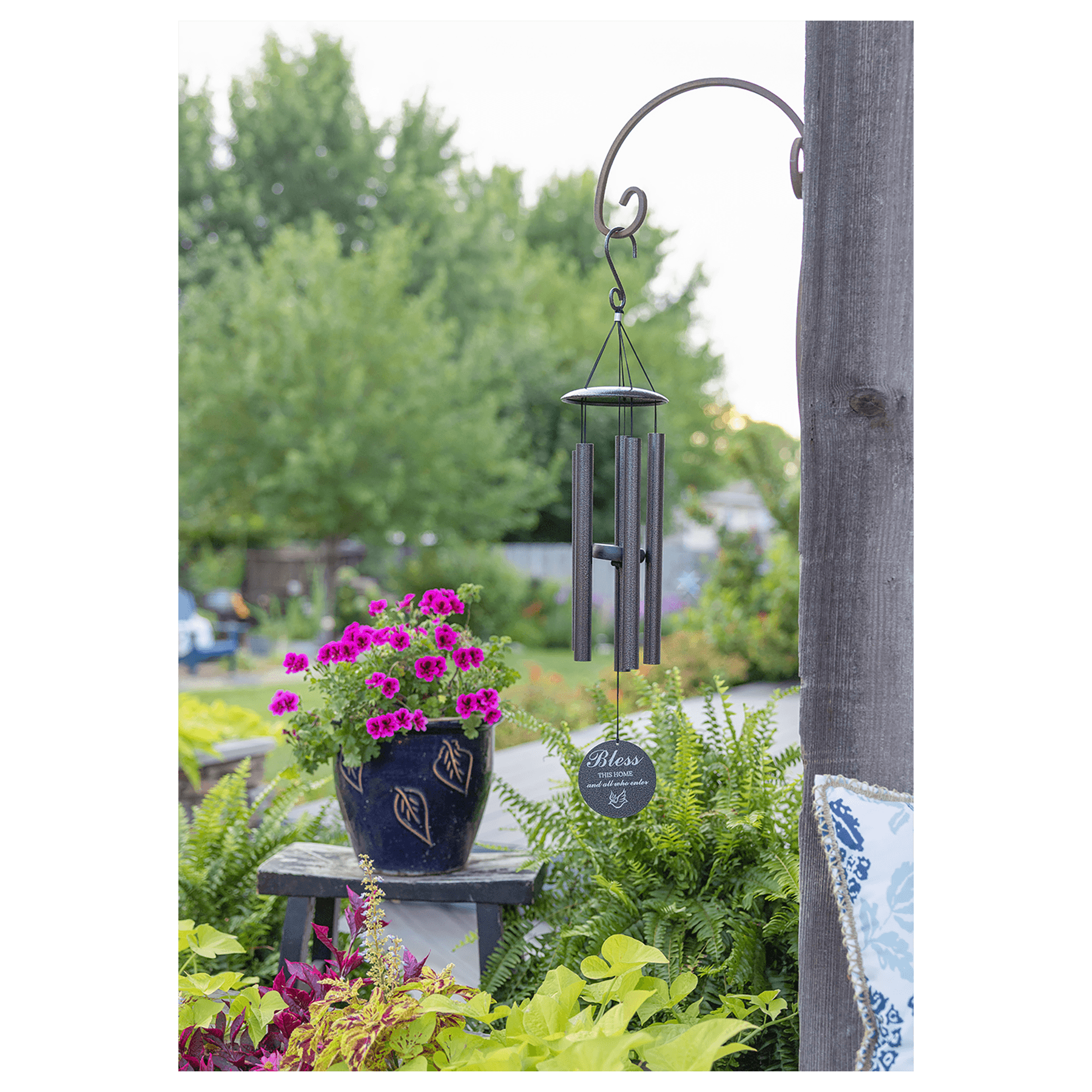 This black powder coated aluminum windchime features a 5 1/2" disc that can be personalized and 6 1" diameter tubes that range from 11 1/4" to 16" in length that produce a beautiful, rich tone in the slightest breeze. Windchimes make a perfect gift for a housewarming or any occasion.