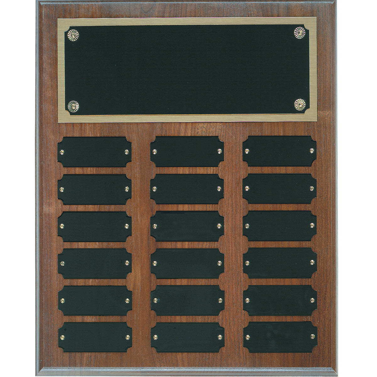 Step Edge Genuine Walnut Completed Perpetual Plaques come with laserable black brass plates. Completed perpetual plaques are assembled with screws and packed in a foam pouch. They come in multiple sizes.