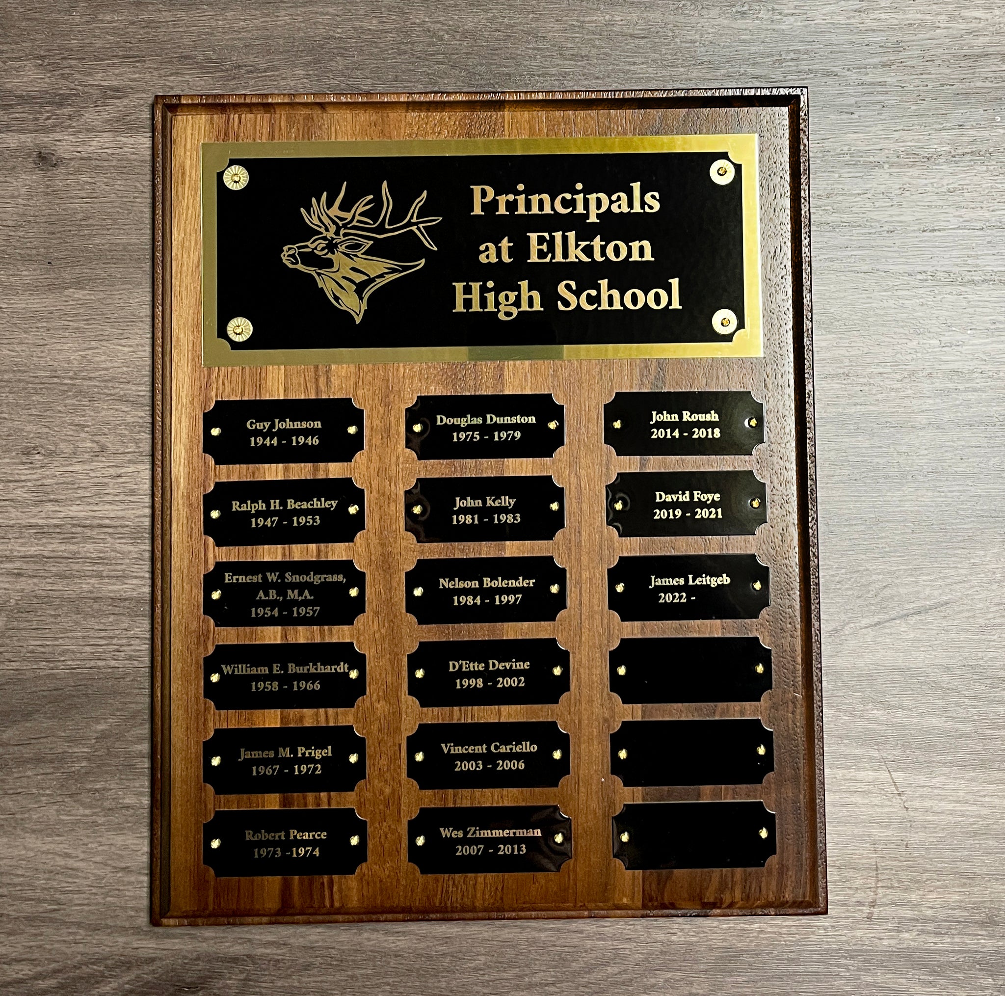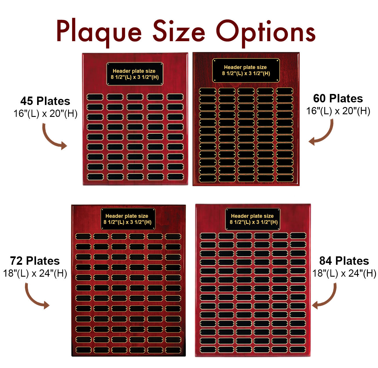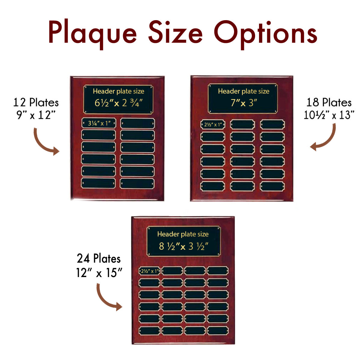 Step Edge Genuine Walnut Completed Perpetual Plaques come with laserable black brass plates. Completed perpetual plaques are assembled with screws and packed in a foam pouch. They come in multiple sizes.